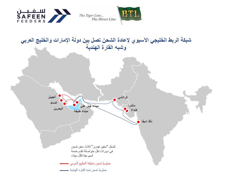 توفر الشركة الجديدة خدمات إعادة شحن تربط إمارة أبوظبي مع الموانئ التي تخدم الحركة التجارية في الإمارات العربية المتحدة والمناطق المجاورة في الخليج العربي وشبه القارة الهندية، وذلك عبر اتفاقية مشاركة السفن التجارية مع شركة "بينيجال تايجر لاين" (بي تي إل) إحدى أهم الشركات العالمية الرائدة في مجال خدمات إعادة الشحن البحري.