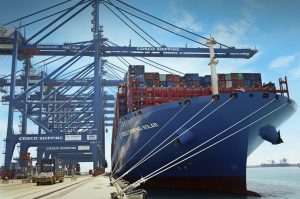 Abu Dhabi, United Arab Emirates, 27th May 2019: CSP Abu Dhabi Terminal, a container terminal built and operated by China's COSCO SHIPPING Ports Limited (CSP) at Khalifa Port in partnership with Abu Dhabi Ports, has received two of the world’s largest mega-vessels within less than a month - cementing Abu Dhabi’s position as a global maritime hub.