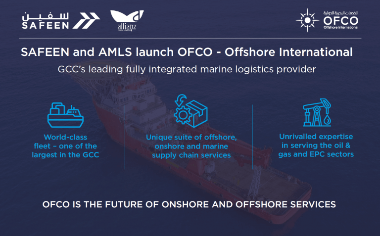 Setting itself apart from the competition, OFCO combines SAFEEN’s strategic position and experience as a port marine operator, with AMLS’ diversified fleet and expertise in offshore logistics and supply chain management, making it the leading fully-integrated supplier of marine logistics solutions and services in the GCC.